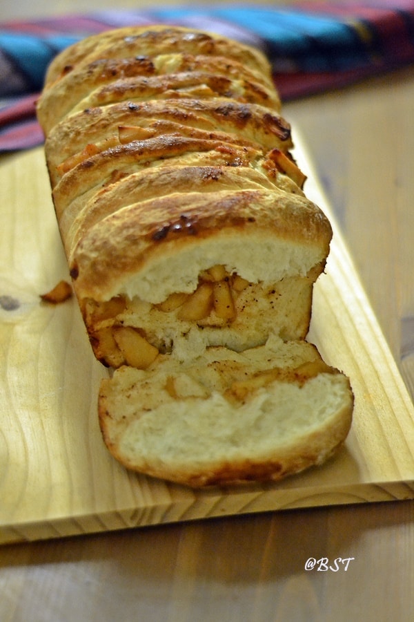 A delicious pull apart bread, with a cinnamony apple filling… Apt for sharing…