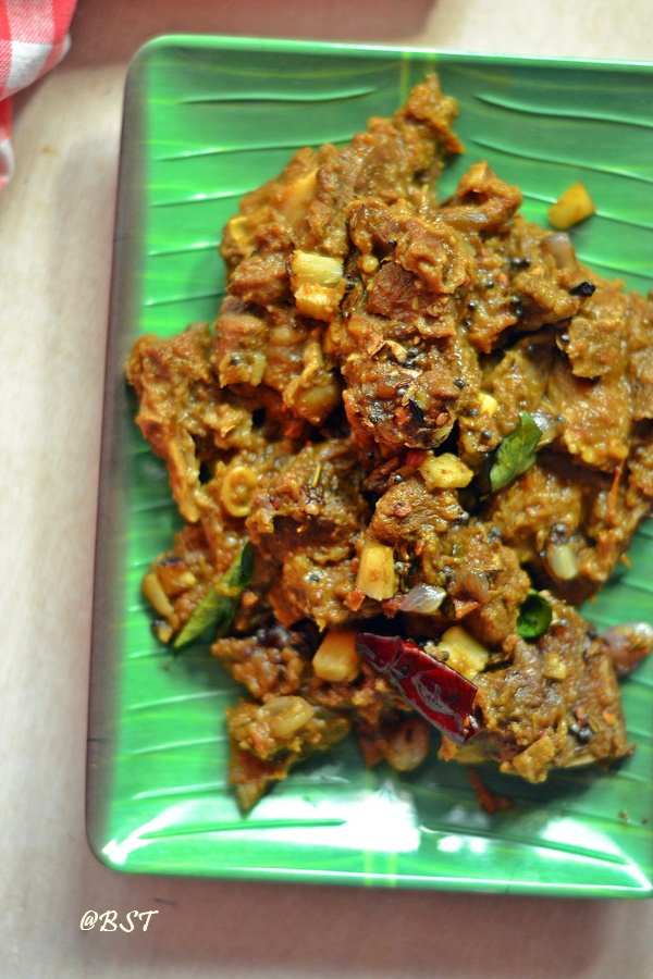 Today’s recipe was made when my HD’s friends had come for lunch. I feel pleasing men is quite a tough task, as they expect women to make much better than they do. Do you ladies agree that food prepared by men taste better than women? Or is it because of our tongue tastes? I guess it has to be second one… Anyway, this roast was highly appreciated by all his friends who came around, saying that it tasted really authentic. I did not refer anywhere for the recipe, kind of mixed and matched the way my umma prepares it (even though it is very rare!!!) and was really happy with the result. I have made this a couple of times again and was really happy with the way it turned out to be…