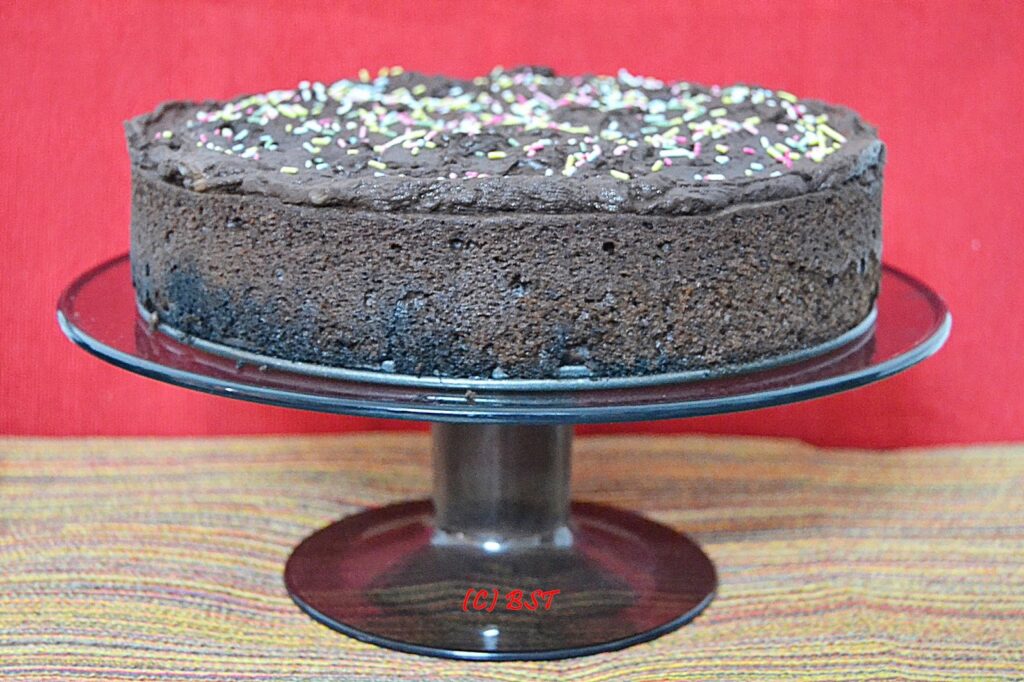 - To prepare ganache, combine all ingredients and melt on a hot water bath till you get a smooth glossy mixture. Allow to cool before spreading it on the top of the cake and sprinkle some sugar sprinkles for making it look colorful, just like I did!!! 🙂