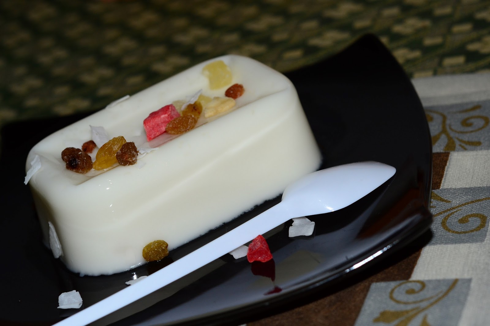 - To serve, flip it onto a plate and serve cold with tutti-frutti and coconut slices.