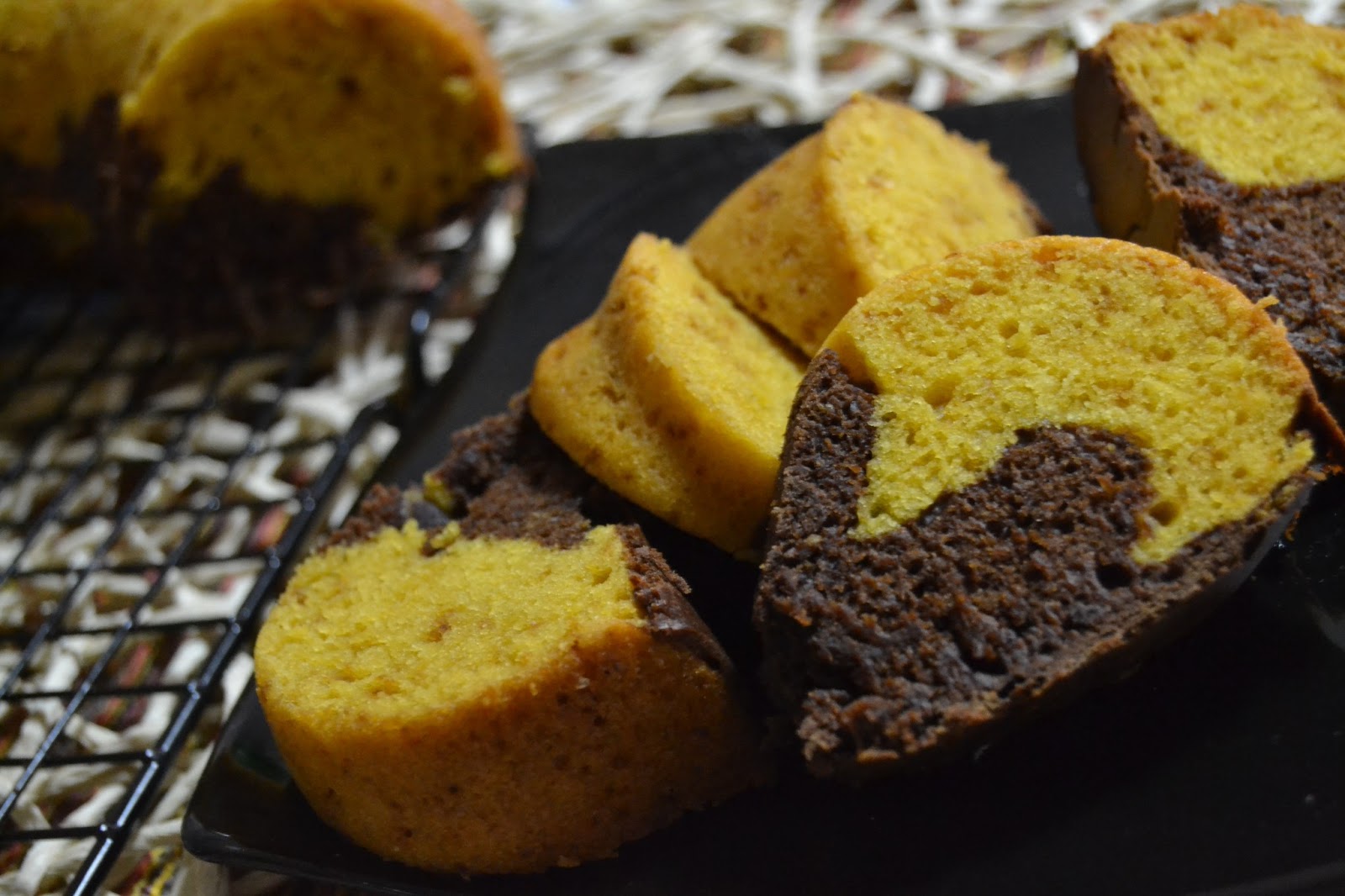 Eggless Mango Chocolate Marble Cake
