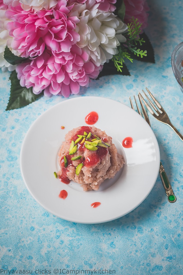 I was just wondering to myself that a few months, I had another sheera as guest post! 🙂 Thank you so much Priya for this lovely post… I can’t stop looking at the pretty pink dessert on the awesome blue background! You know how much we as bloggers have eyes that loiters all over the place apart from the food! 😉