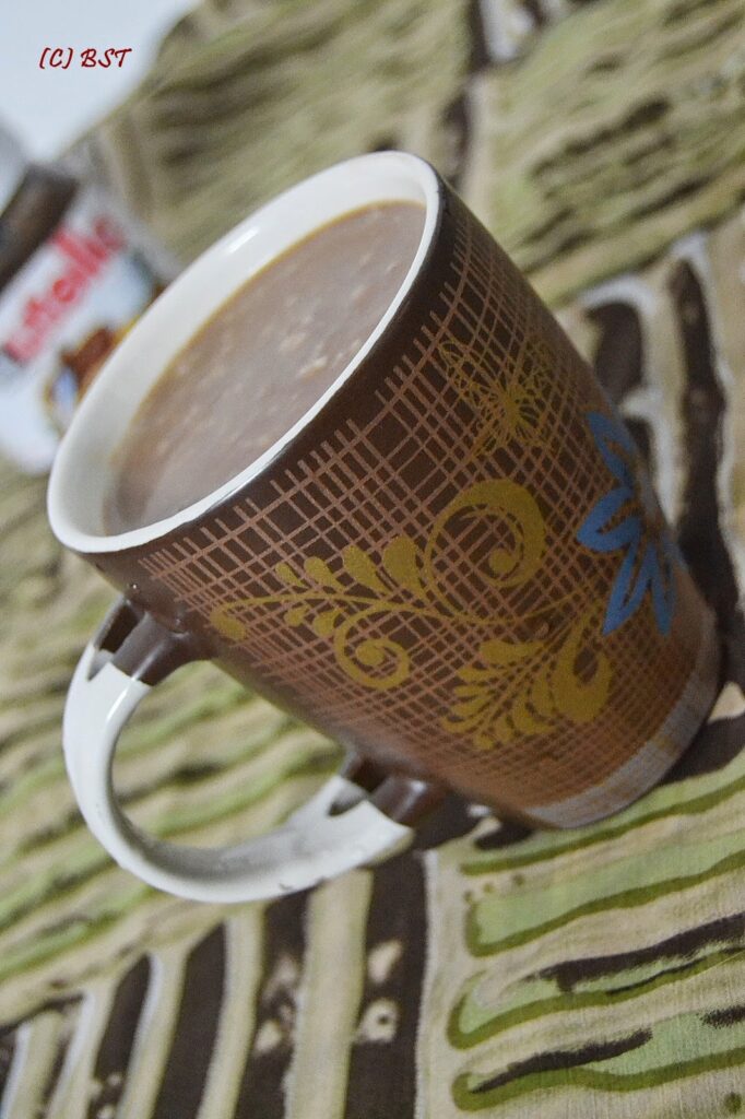 Not being in a mood to type out loads, but still wanting to do a post, today I have with me some Nutella oats that I had made for myself as a light dinner. Hardly anybody hates Nutella, I have a 50-50 relationship with it. Sometimes I love it, sometimes, I just don’t want to have it. Normally, I make my oats this way, but this was just a little twist to our normal oats and I really loved it. The girls who gulped down in their mini cups also licked it away.