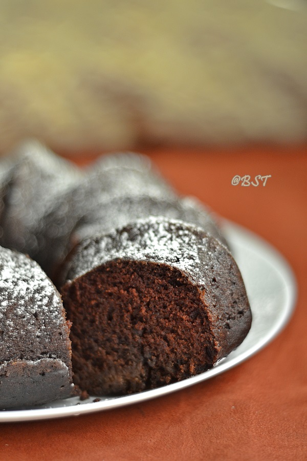 I have kept the sugar to the minimal and served up the cake with a dusting of icing sugar. You can replace the brown sugar with normal granulated sugar, though I love the flavor and color that brown sugar gives to chocolate cakes. Another big pointer for this cake is to use coffee instead of plain warm water. I have tried with both and loved the coffee version more. So it is for you to choose what you would like to go for. 🙂 Do make it for a lazy afternoon tea time and I am sure you won’t regret making it or eating it! Off to the recipe…